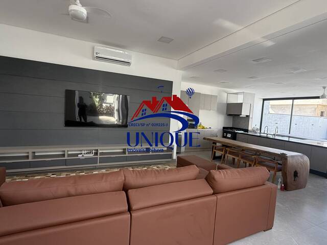 São 4 suítes, todas com closet e planejados, sala de estar com tv e móveis, lavabo, cozinha totalmente equipada e espaço gourmet.